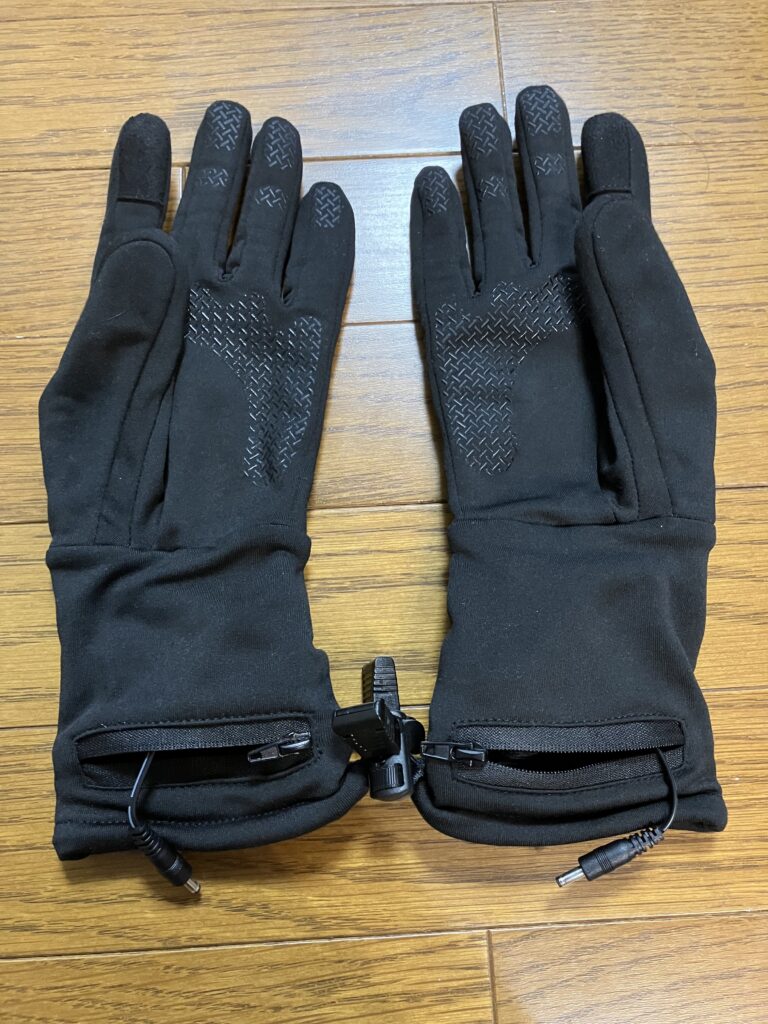 ・バッテリー接続状態の両手で約240g。(今まで使っていたヒータ無し手袋:両手で約70g。)